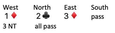North is a bit stuck here with what I call the Bath Coup Dilemma. West is that wily Sammy Krumholz and he might easily have played a small ♣️ from A J x—inviting or daring North to continue ♣️s into his A J. In that case North’s ♣️ continuation is likely to award East/West with an undeserved overtrick. West’s play of small from A J x on a K lead is called the Bath Coup.