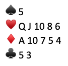 North cannot have a strong no-trump hand. He/she would have bid 1 NT on the first round with such a hand. This 2 NT bid is of the “unusual no-trump” variety–showing the two unbid suits (♥️s and ♦️s). South should bid her/his longest red suit.