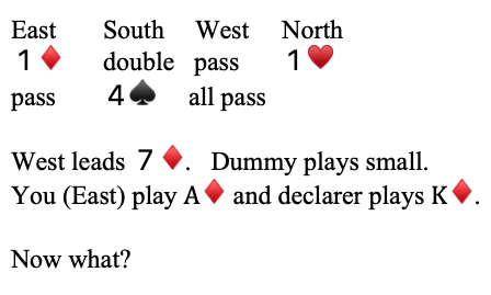 At our table East tried to cash two ♥️s. Declarer ruffed the second ♥️ and claimed the remaining tricks. Letting North/South make an overtrick gave East/West a 25% board. Only one East out of nine held South to 10 tricks–earning a 60% board for East/West. The key to the hand is to realize that West’s 7♦️ lead is a singleton.