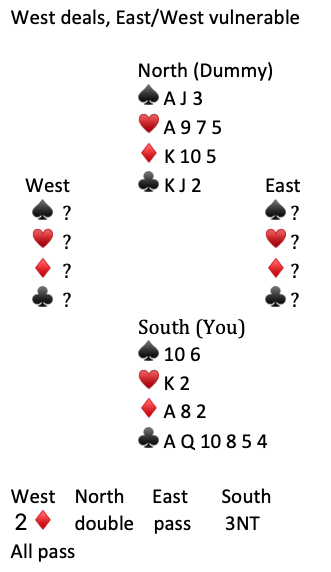 When you run diamonds the O’s get a count on the diamonds. The diamonds do not have a threat card. Hint: When you get down to three cards what is the third card in your hand?