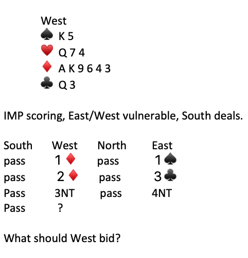 I recognized ‘quantitative’, but still like finding out aces and kings by the 5 level. If East doesn’t like diamonds West could be in big trouble and needs top honors.